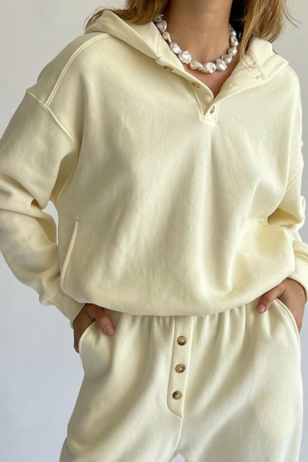 pairs perfectly with the eco-fleece button sweatpants for a cozy set.