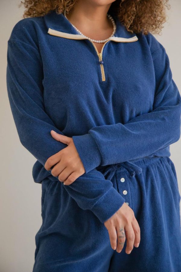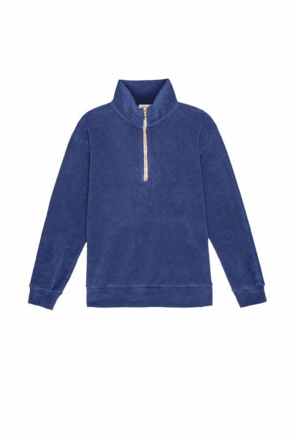 terry cloth 1/2 zip pullover with freshwater pearl zipper