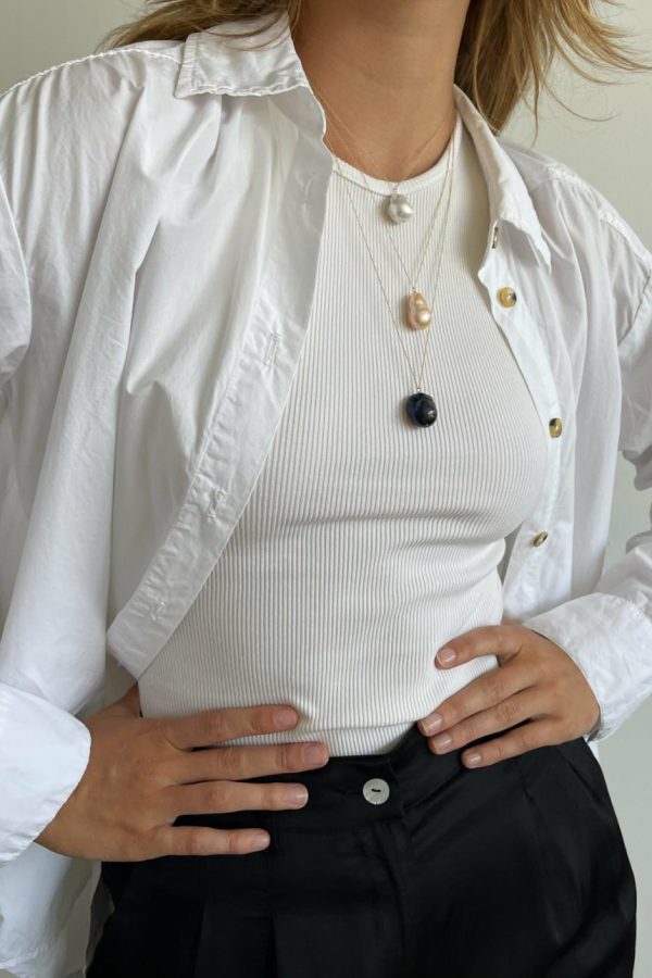 This gold and baroque pearl necklace elevates the everyday. Elegant yet casual, this necklace makes a great layering piece that you will never want to take off! Each pearl is unique, and is subject to its own perfect imperfections.
