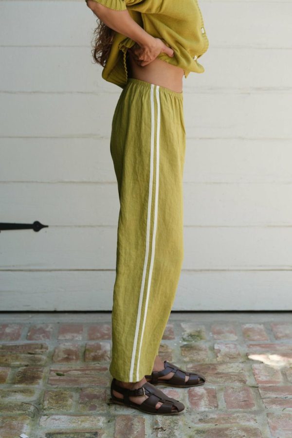An effortless wardrobe staple with a featherweight feel. Crafted from our 100% linen fabric with an elastic waistband, racer stripes, cropped fit, and wide leg silhouette.