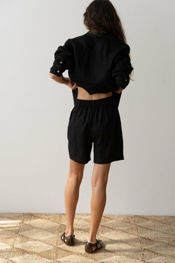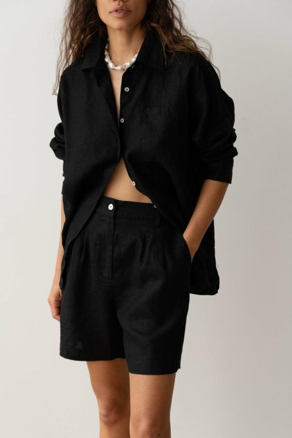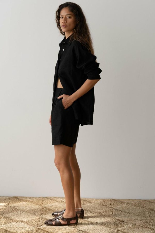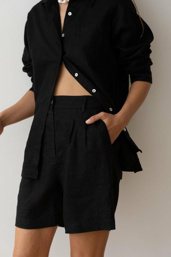 A true summer wardrobe essential, crafted from our lightweight linen fabric. Featuring side pockets, front pleats, and finished with a mother of pearl button.