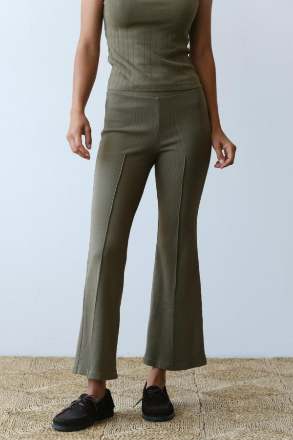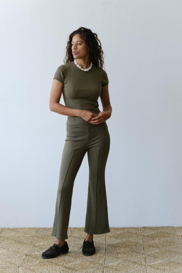 Our #1 best-seller. A fitted, ribbed pant with a classic kick flare, cropped length, and pintuck detail on the front and back. Ultra-flattering, comfortable, and effortlessly cool.