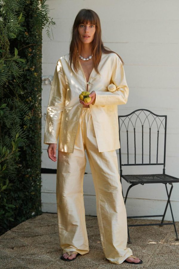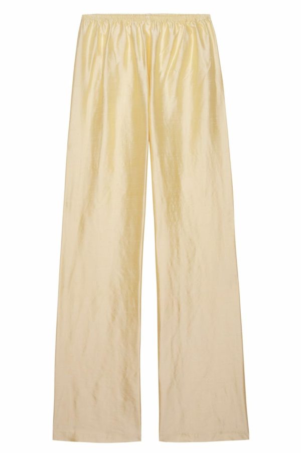 The Taffeta Simple Pant is effortless yet elevated. Crafted from our 100% silk taffeta fabric with an elastic waistband, and wide leg silhouette silhouette.