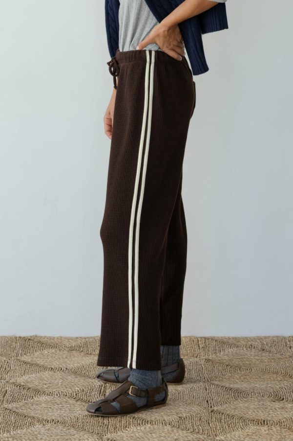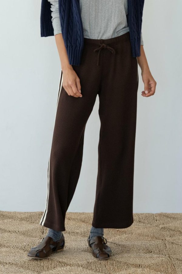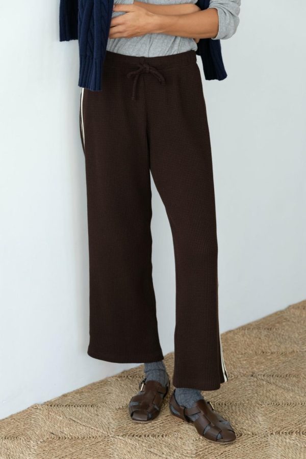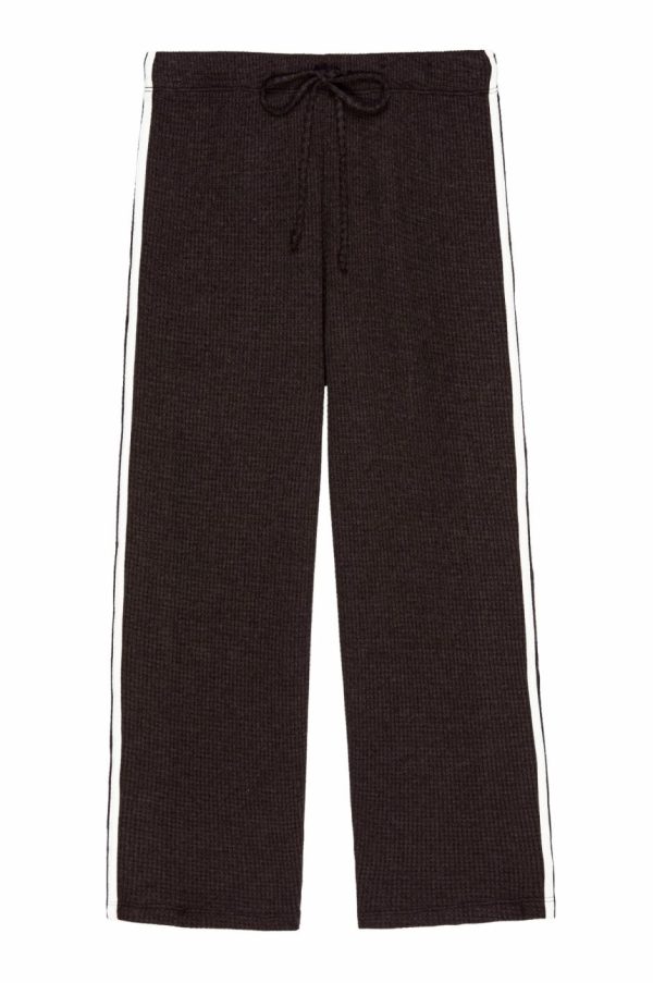 The Thermal Crop Stripe Pant is crafted from soft, breathable thermal. It features a cropped fit, double stripe detail, waffle texture, and an adjustable drawstring waistband